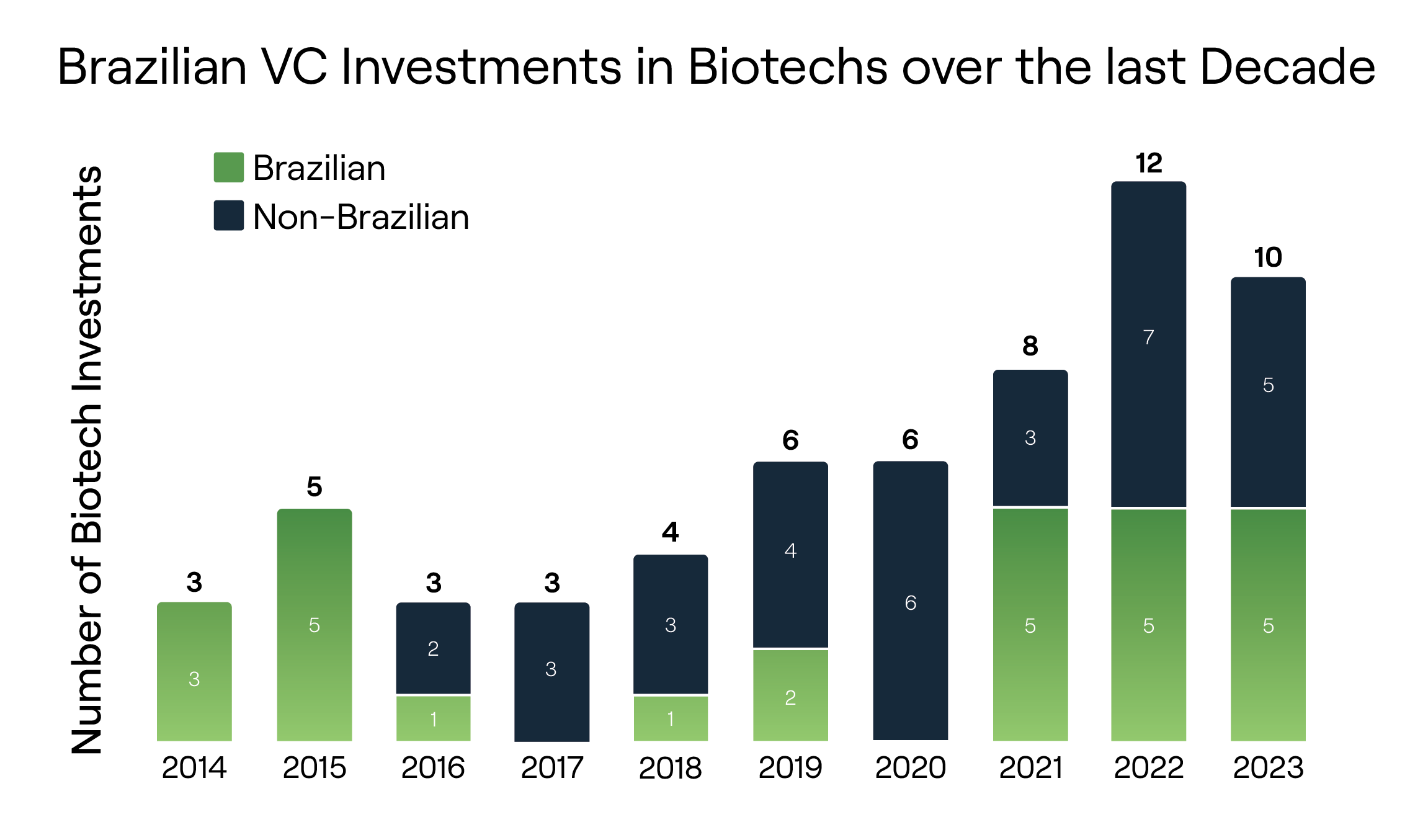 Despite its limitations, Brazil has outstanding research centers and principal investigators. The data on Brazilian biotech-venture backed companies also shows that the country is becoming a more biotech investing-friendly country. With the emergence of biotech-focused VCs we might see more investments in Brazilian biotech companies with internationalization strategies in the future.