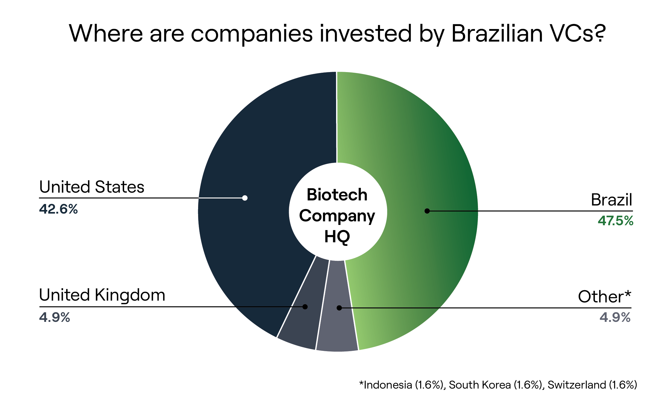 - A notable portion of Brazilian venture capital investments is directed towards US-based biotech companies, likely influenced by the advanced stage of development in the US biotech sector.