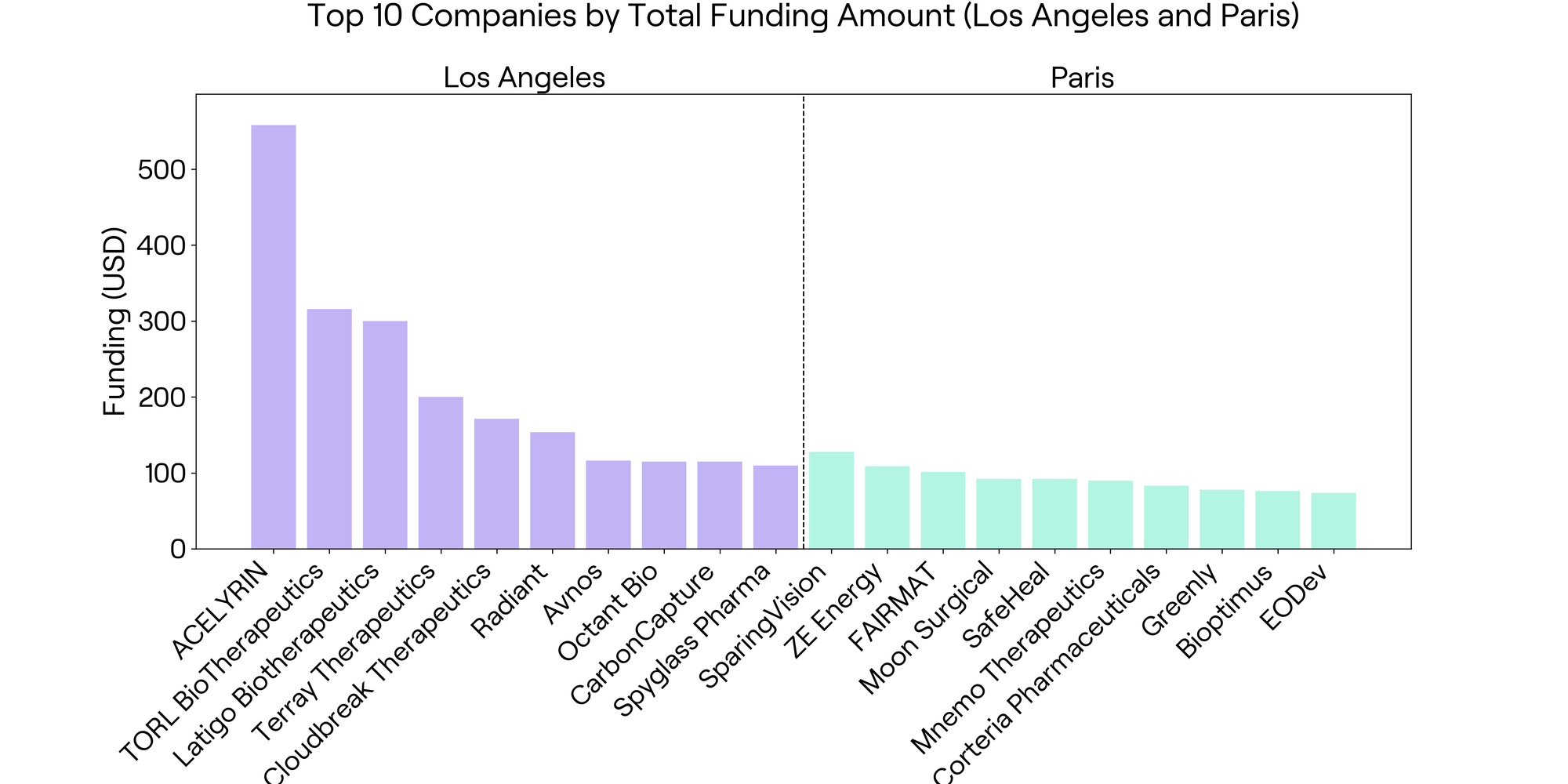 Paris also has a strong presence in therapeutics, with three of its ten most well-funded startups in this space. These companies target fields such as ophthalmology, oncology, and cardiovascular disease, similar to those emphasized in LA. However, most Paris-based therapeutics startups are still in the preclinical or early clinical stages. SparingVision, the most advanced among them, has completed a Phase I trial for its lead drug, SPVN06, and is preparing for Phase II (YSIOS Capital). This suggests that while the Paris therapeutics ecosystem is active and innovative, it remains earlier in its development lifecycle compared to LA.